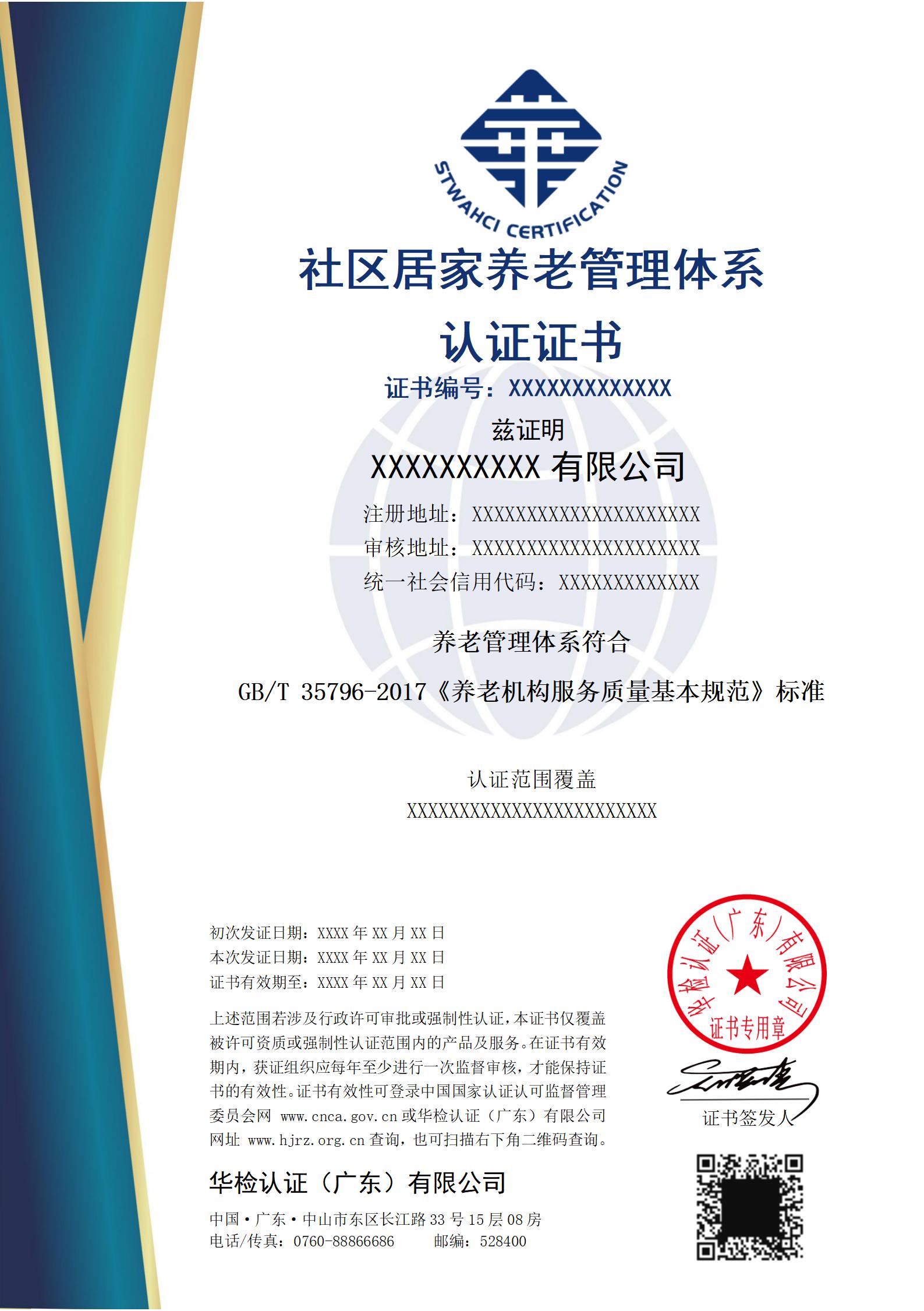 養(yǎng)老管理體系認(rèn)證證書