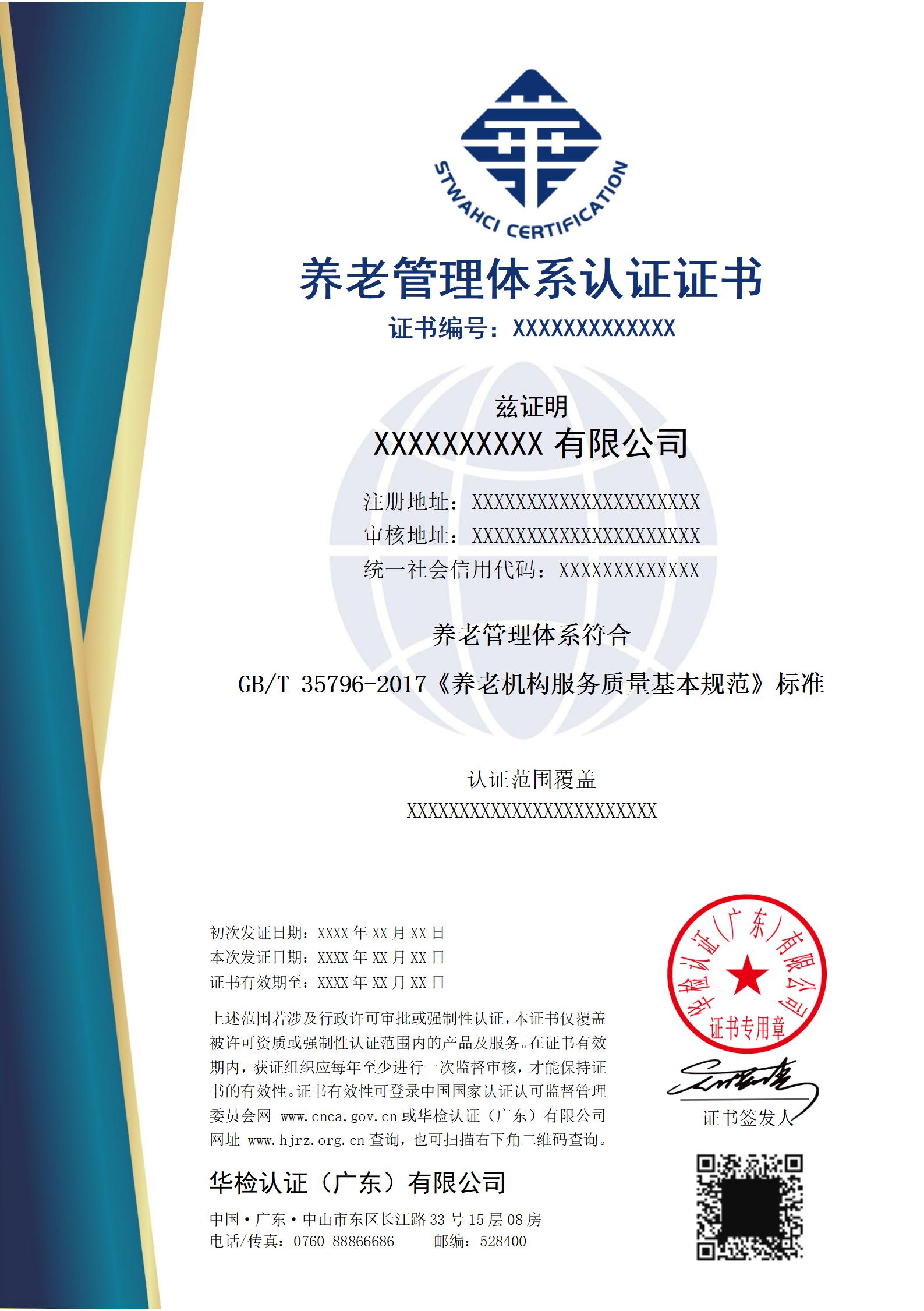社區(qū)居家養(yǎng)老管理體系 認(rèn)證證書(shū)