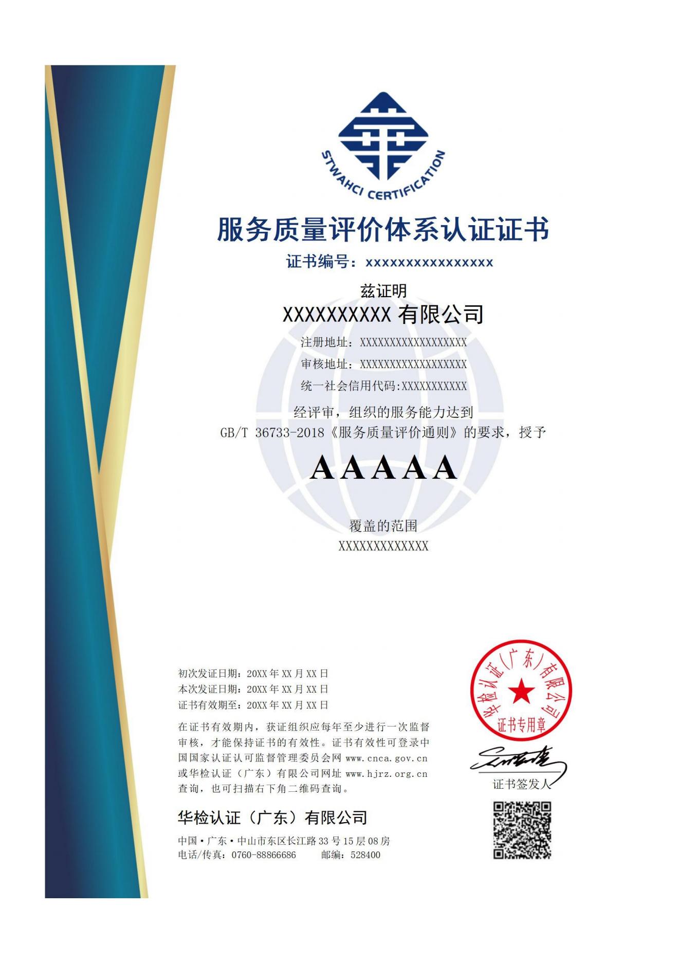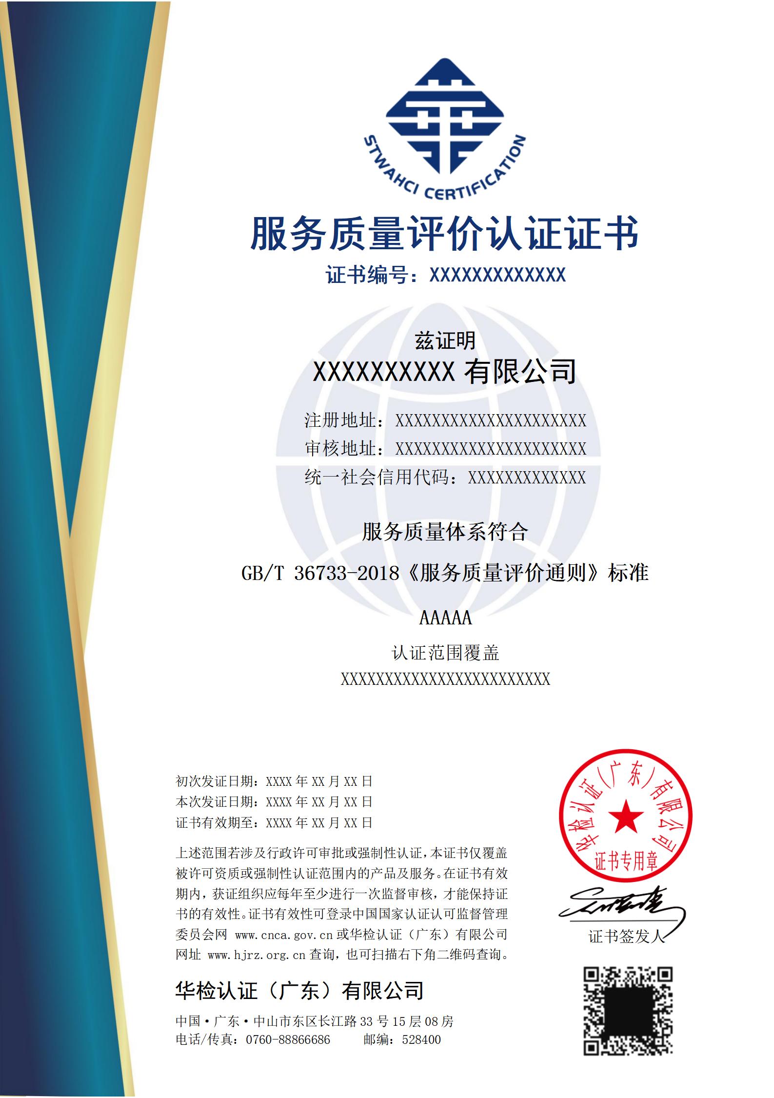 服務(wù)認證證書樣式